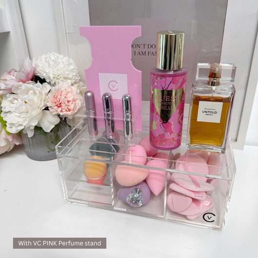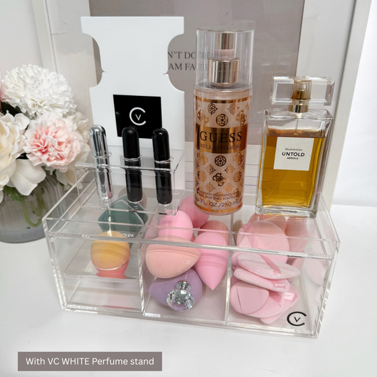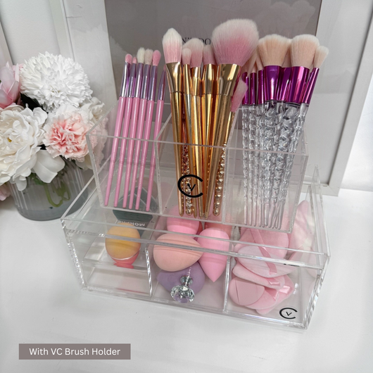 - Store beauty products on the top of the holder OR add an additional VC storage piece as shown in phots. Add an additional storage piece in the drop down box on this listing.